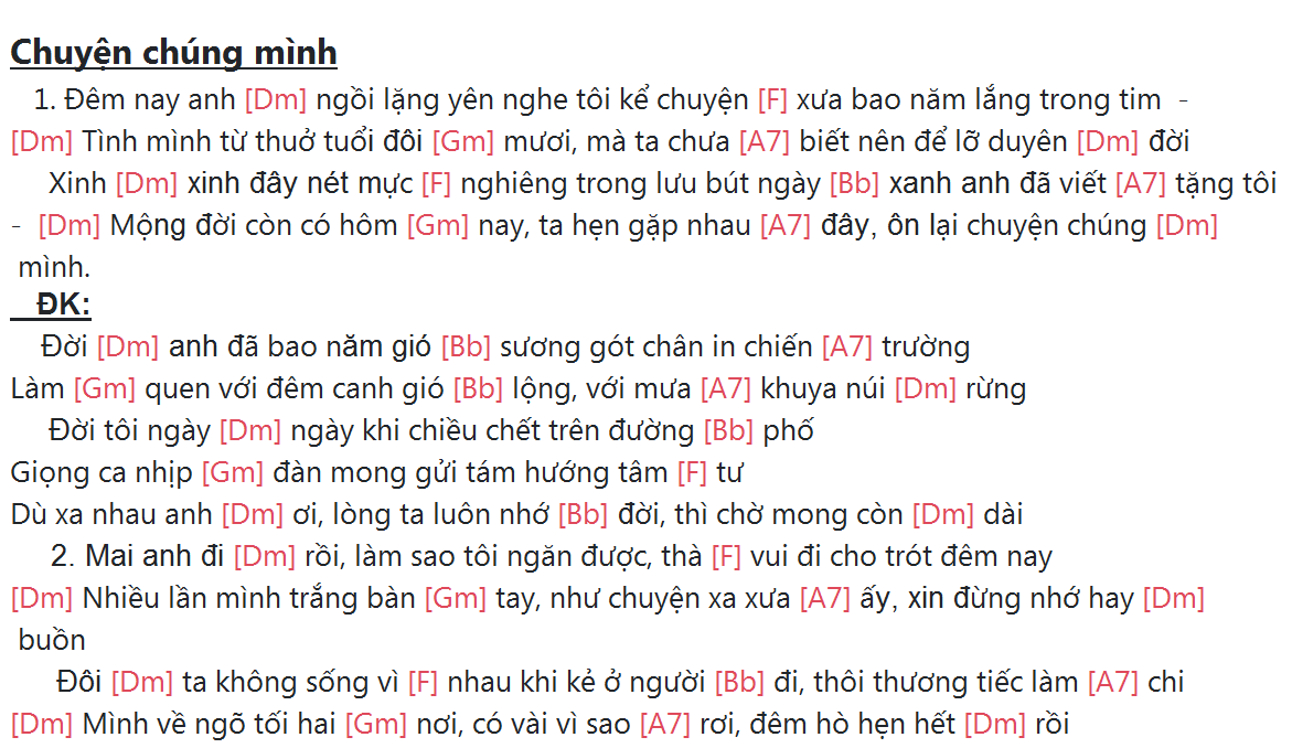 Hợp âm - Chuyện Chúng mình - Trần Văn