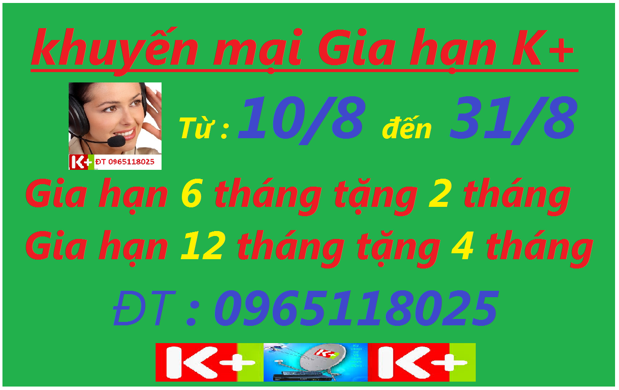 1/-Nội dung khuyến mãi: Tặng Miễn phí bộ thiết bị đầu K+ trị giá 990.000đ Khi đăng ký mới thời hạn 12 tháng trở lên Gói K+