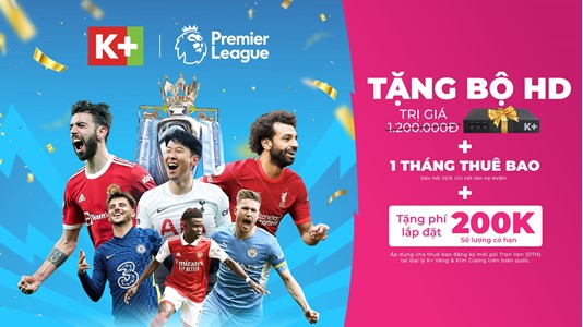 Đăng kí K+ ngay hôm nay để xem trọn vẹn cúp C1, 380 trận Ngoại hạng Anh và Europa League, đầy đủ nhất và hay nhất trên các kênh K+! Hơn nữa, K+ có kho phim Việt chiếu rạp mới nhất, phim truyền hình Mỹ và Châu Á hấp dẫn, các giải tennis và golf hàng đầu bên cạnh cả trăm kênh trong nước và quốc tế chọn lọc. Đặc biệt, khán giả còn có thể theo dõi những nội dung đặc sắc nói trên qua các thiết bị di động như điện thoại thông minh, máy tính bảng, máy tính cá nhân… kết nối Internet bằng ứng dụng xem truyền hình trực tuyến myK+ miễn phí cho các thuê bao K+.