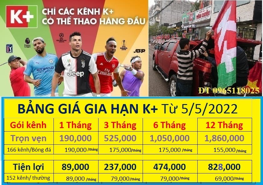 Lắp đặt K+ mới luôn có chương trình Khuyến mại hấp dẫn cho khách hàng vào từng thồi điểm . Hãy gọi cho chúng tôi để được giá tốt nhất ; ĐT 0965118025