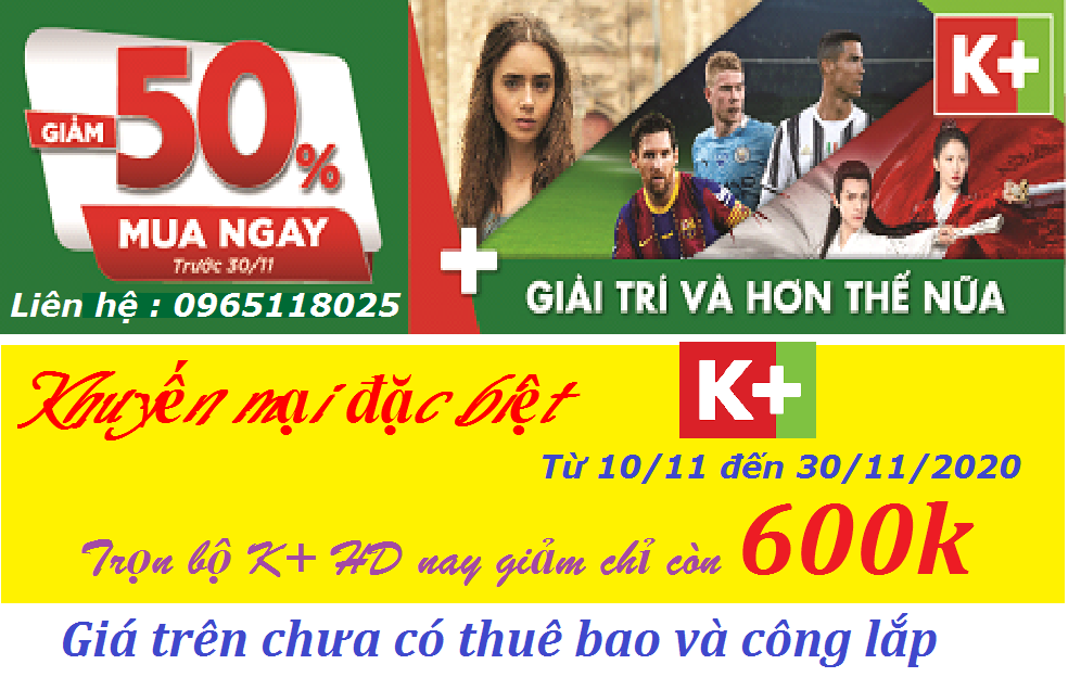Chương trình Khuyến mại hấp dẫn từ 10/9/ đến 12/10/2020 khi lắp bộ đầu thu K+ mới đón mùa giải Bóng đá Ngoại Hang Anh